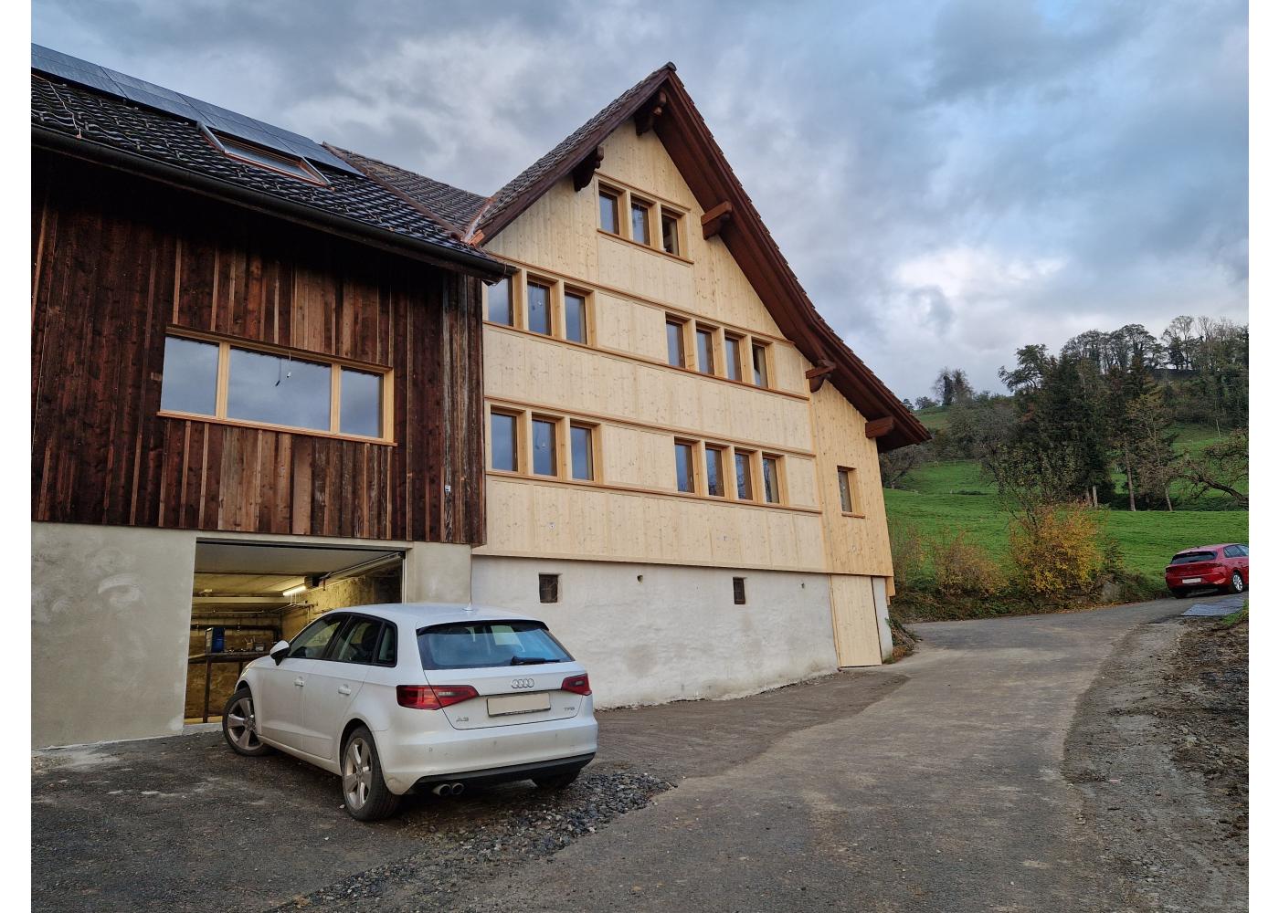 An ruhiger Lage in den Landwirtschaftszone konnten wir ein älteres Bauernhaus renovieren. Zusätzlich wurde der Wohnraum in den bestehenden Stall erweitert, wobei das Flair des Stalls erhalten blieb.